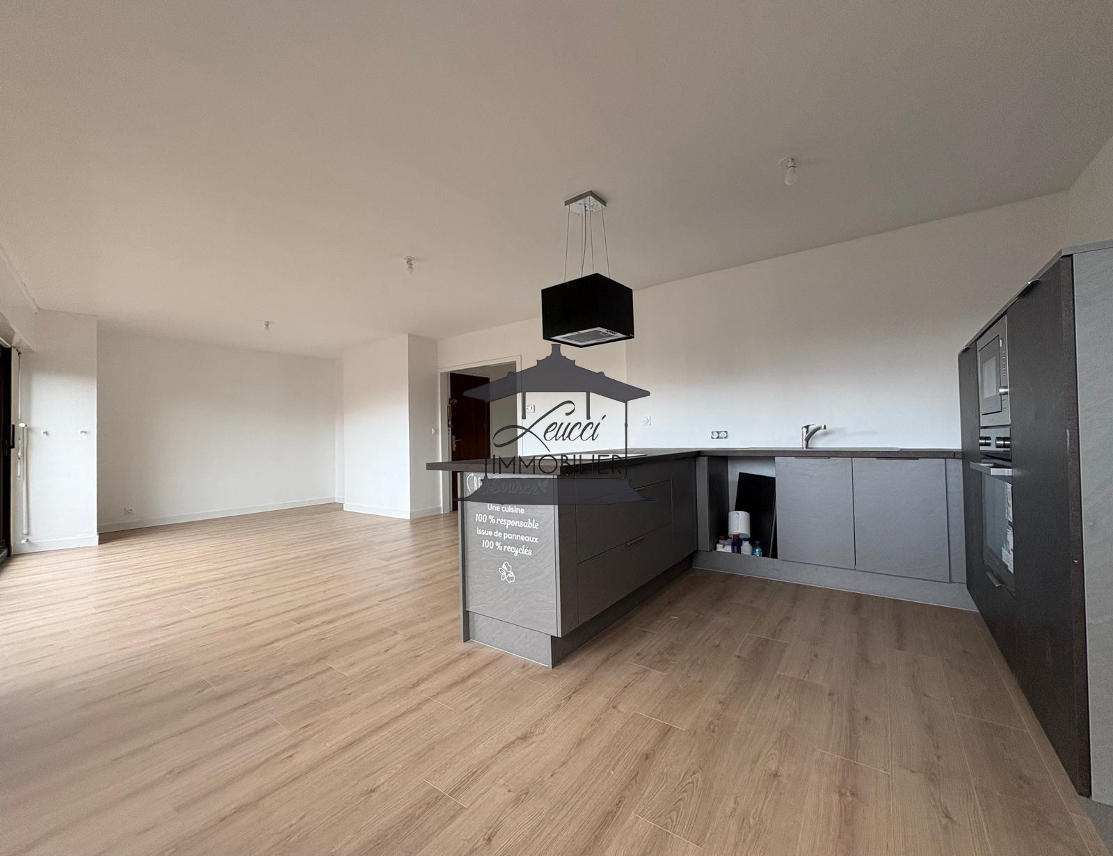 Il se compose d'une belle entrée, d'un vaste salon-séjour offrant un bel espace de vie, d'une cuisine ouverte, aménagée et équipée, de trois chambres, et d'une salle d'eau.