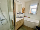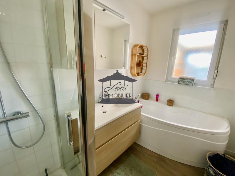 Au rez de chaussé vous découvrirez une entrée avec carreaux de ciments, un salon séjour cocooning avec cheminée, une cuisine ouverte, une salle de bain avec baignoire et douche, des sanitaires ainsi qu'une véranda donnant sur le jardin.